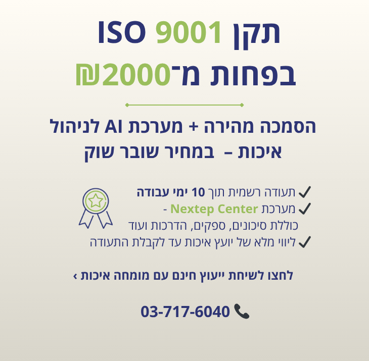 מערכת Nextep Center – הפיתרון הטכנולוגי המתקדם ביותר בעולם להטמעת תקני ISO.